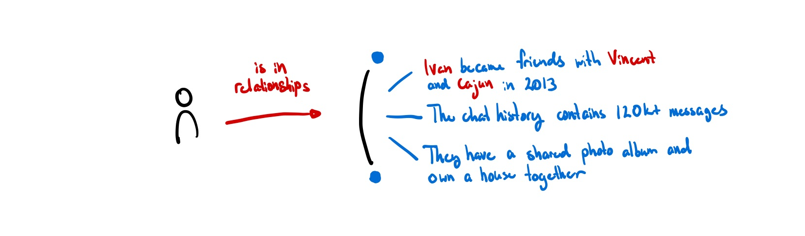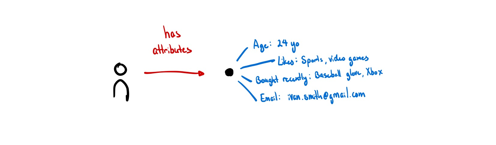 Most data models default to this assumption of identity as objects with attributes. Almost all programming languages model things, including people, this way. ISO/IEC 24760-1, the only formal international standard for identity, sees identity as a set of attributes to be managed4. Databases are similar, either being documents with attributes or rows in a table. Relations are encoded as references to other documents, not as things in and of themselves.