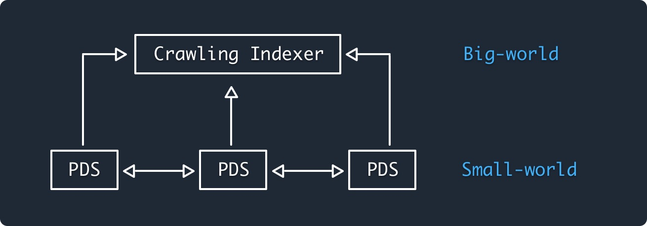 ATP syncs the repositories in a federated networking model. Federation was chosen to ensure the network is convenient to use and reliably available. Commands are sent between servers using HTTP + XRPC