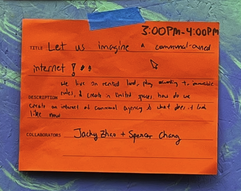 This year at DWeb Camp, Spencer Chang and I hosted a session asking campers to gather their collective imaginations and dreams for what a communally-owned internet could look like.