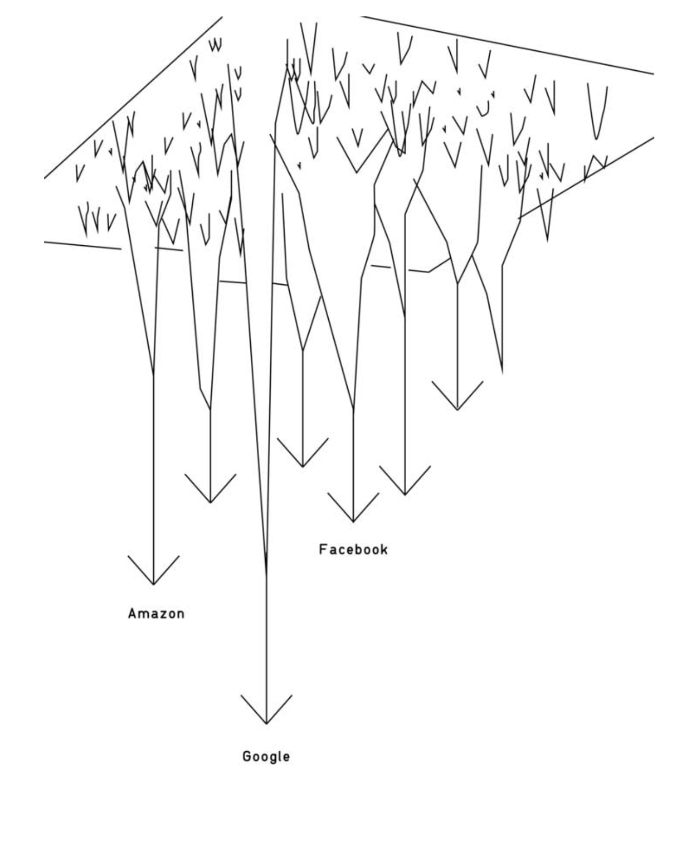 Imagine the surface of the web as a representation of its potential activity. A few heavyweight players have dug into the web surface, dragging activities down their slopes, activities that could have remained independent and decentralized.
