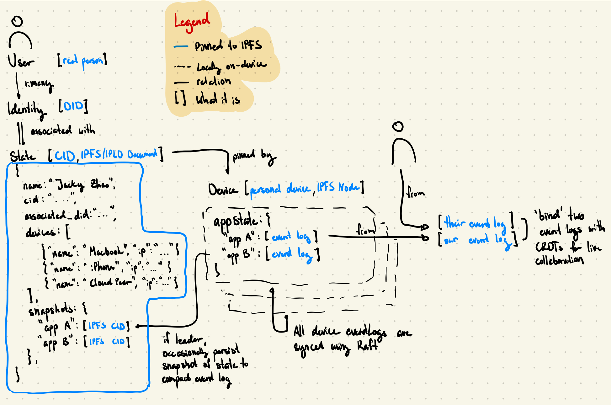 - Each user is essentially a DID that is associated with an IPFS document that references a bunch of other things