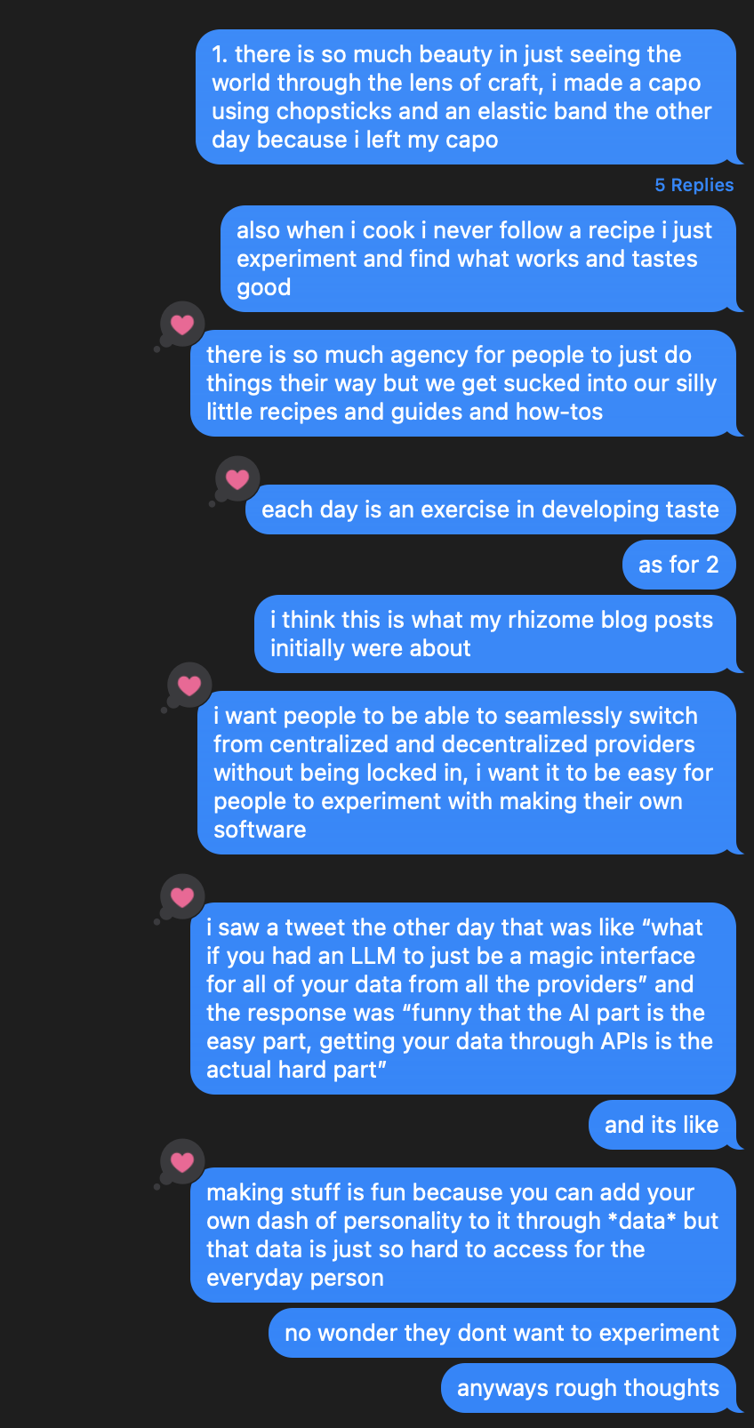 - I like having technical principles like “local-first,” but I’m even more excited by what these concepts can enable in terms of building more authentic, sustainable, and personable software products online.