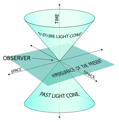 Causality means that an effect can not occur from a cause that is not in the back (past) light cone of that event. Similarly, a cause can not have an effect outside its front (future) light cone.
